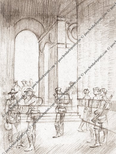 'MAN AT ARMS' SIZE A3 GHOST SENTRY AT THE MENIN GATE ~ YPRES